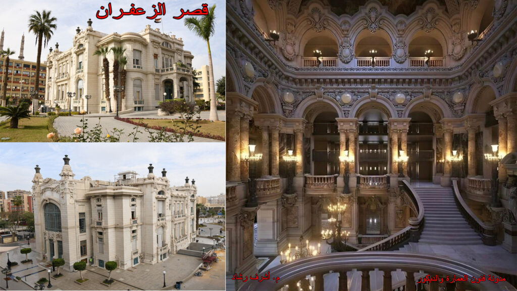 قصر الزعفـــران: يرجع تاريخ إنشائه إلى عام 1865م في عصر الخديوي إسماعيل، حيث عهد الى مغربى بك بالأشراف على بنائه وهو أحد الذين أبتعثهم الخديوي للدراسه فى فرنسا، وصمم القصر على نفس طراز قصر فرساي في فرنسا، ويطل القصر على حي العباسية من أربع واجهات، وواجهات القصر معشقة بنوافذ وشرفات بعقود نصف دائرية، وزخارف جصية بهيئة فروع نباتية، وأكاليل زهور غاية في الجمال، وفى عام 1872م أعتلت صحه الوالده باشا والدة الخديوي اسماعيل ونصحها الأطباء بالعيش فى مكان ذو هواء نقى وجاف وهو ماكان يتمتع به قصر الزعفران، وبلغت مساحة حدائق القصر 100 فدان زرعت به مساحات شاسعه من نبات الزعفران وهو سبب تسميه القصر لأن رائحه الزعفان كانت تفوح فى أنحاء المنطقه، ويتكون القصر من ثلاث طوابق ، يشمل الطابق الأول بهو الاستقبال وعلى جانبيه قاعتان اليسرى تستخدم حالياً كقاعه اجتماعات رئيسيه لمجلس ادارة الجامعه وأما القاعه اليمنى فهي القاعه الشهيره التى توجد بها المائده التى وقعت عليها معاهده 1936م ولا تزال موجوده الى الان، وتستخدم كقاعه اجتماعات، والسلم الذهبي يؤدى للطوابق العليا من القصر وهو مصنوع من النحاس المغطى بطبقه مذهبّه وهو شديد الفخامه ولا يوجد له مثيل فى القصور المصريه، والسقف العلوى للقصر مصنوع من الزجاج البلورى المعشق بالوان زاهيه يغلب عليها لون السماء الازرق وتنعكس اضاءته على السلم الفخيم، ويوجد في الطابق الثانى: ثمان غرف نوم كل غرفه ملحق بها صالون وحمام تركى مصنوع من الرخام والاضاءة تعتمد على كوّات من الزجاج الملون يعلوها قباب ملونه بالوان السماء، تستخدم الغرف حاليا كمكاتب لرئيس الجامعه ونوابه .. والطابق الثالث كان مخصصاً للحاشيه وهو الآن يستخدم كمكاتب اداريه، وهناك قصور اخرى تستخدم حالياً كسفارات في أحياء الزمالك وجاردن سيتي والمعادي.