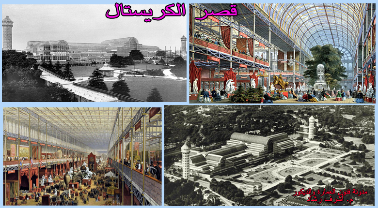 اعتبر تصميم قصر الكريستال  Crystal Palace للمعماري جوزيف باكستون Joseph Paxton  بلندن سنة 1851 بمثابة خطوة متطورة في حركة العمارة للأجيال اللاحقة وذلك باستخدام عناصر ومفردات معمارية بشكل جديد حيث قدم  الحديد والزجاج كمعيار تقني أمام المعماريين وغير وجه العمارة في القرن التاسع عشر وحرص المصمم علي استخدام التماثيل والحدائق في داخله لخلق فضاءات تخفف من حدة تكرار العناصر.